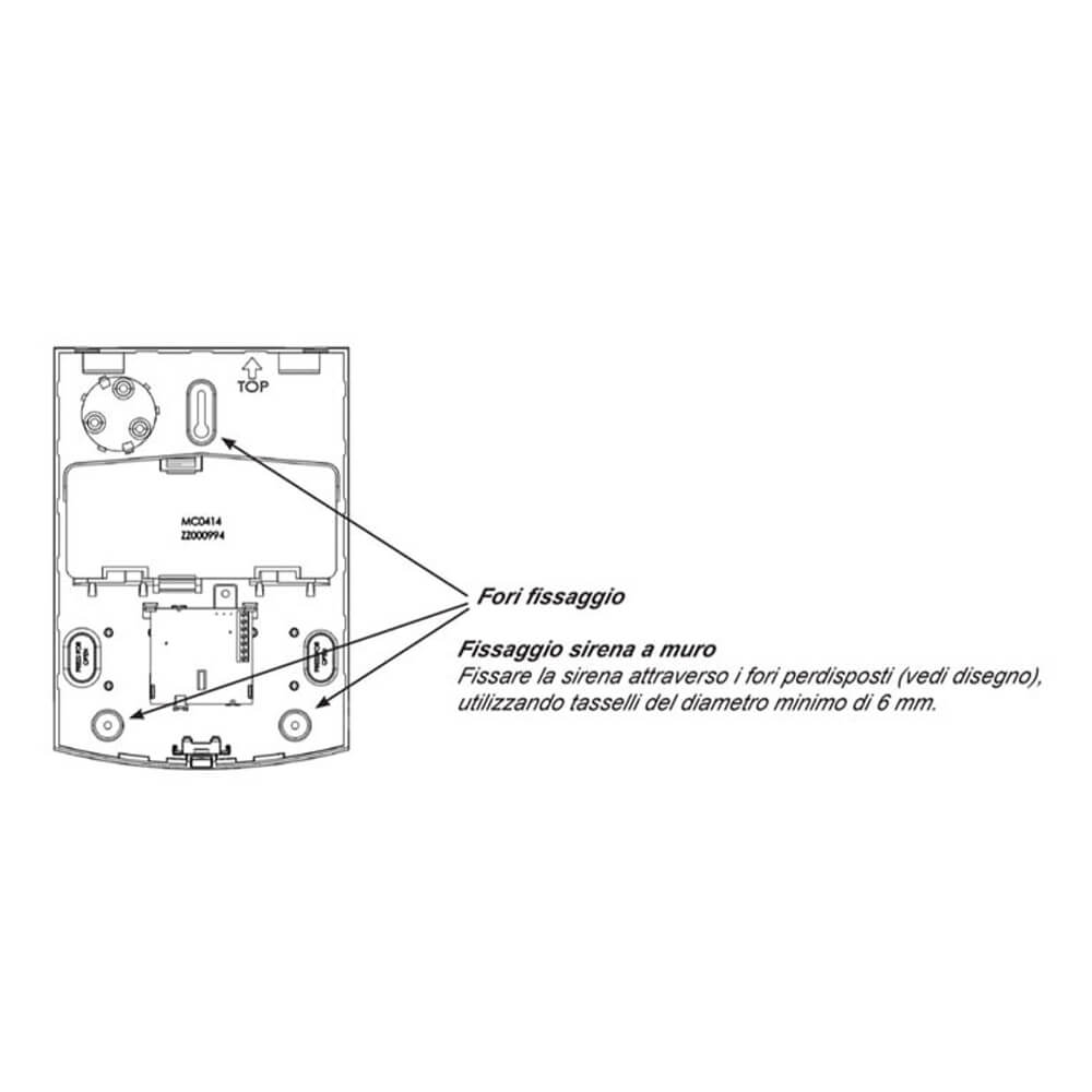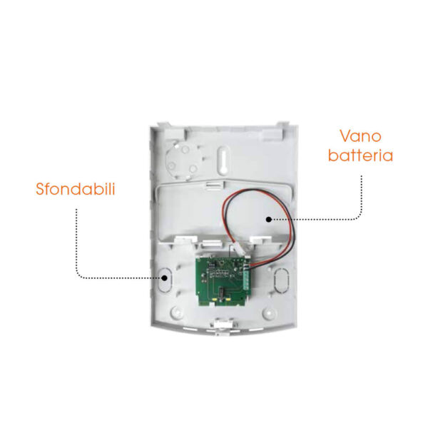 La sirena utilizza un trasduttore piezoelettrico che assicura una potenza acustica fino a circa 105 dB a 1 metro, mantenendo consumi contenuti. È dotata di protezioni antiapertura e antistrappo integrate, oltre a una batteria interna che ne garantisce il funzionamento anche in caso di interruzione dell’alimentazione principale. L’installazione è semplice grazie al design compatto e alla predisposizione per montaggio a parete.